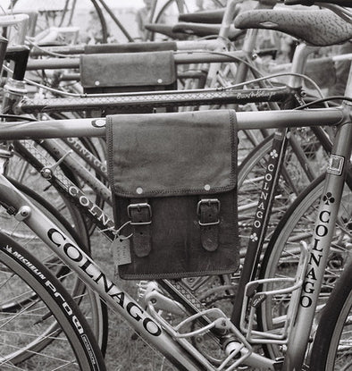 In early summer this year, we were lucky enough to bring some of our bags to the beautiful village of Bakewell for the first British version of L'Eroica, an annual Italian vintage racing cycle festival that celebrates vintage steel framed bikes and long distance mixed road and gravel riding with the support of the surrounding villages, providing food, drinks and lots to buy and explore! Although the English countryside is very different from its usual setting of Tuscany, the L'Eroica Britannia festival was brilliant; we had great weather the whole weekend (really), lots to do, and most importantly, there were thousands of beautiful bicycles, all made before 1987. There were also some lovely leather bags on display too!