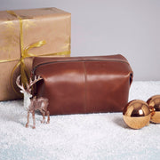 Handmade using beautiful, distressed buffalo leather, which gives our wonderful wash bags their vintage character that your Dad will love on his trips away.