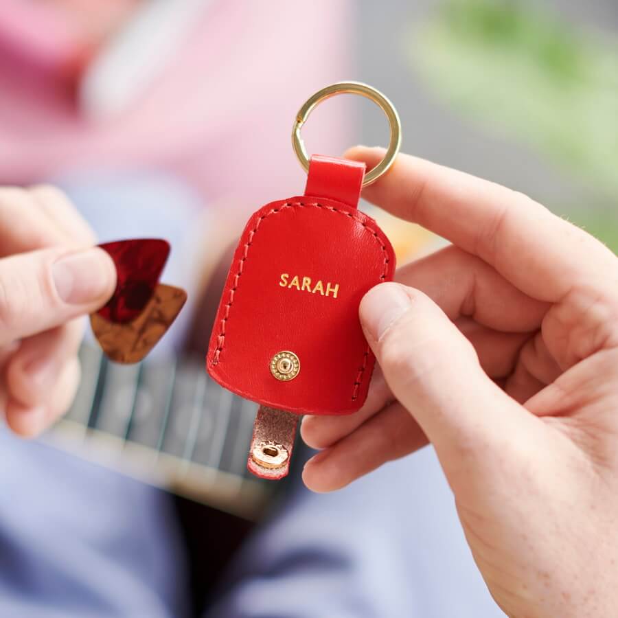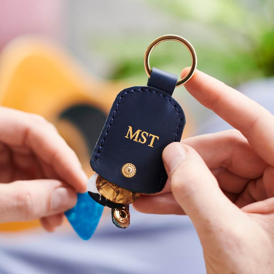 This handmade leather keyring is the perfect place to keep your guitar plectrums, so you're never left ill-equipped when an opportunity to show what you can do arises.