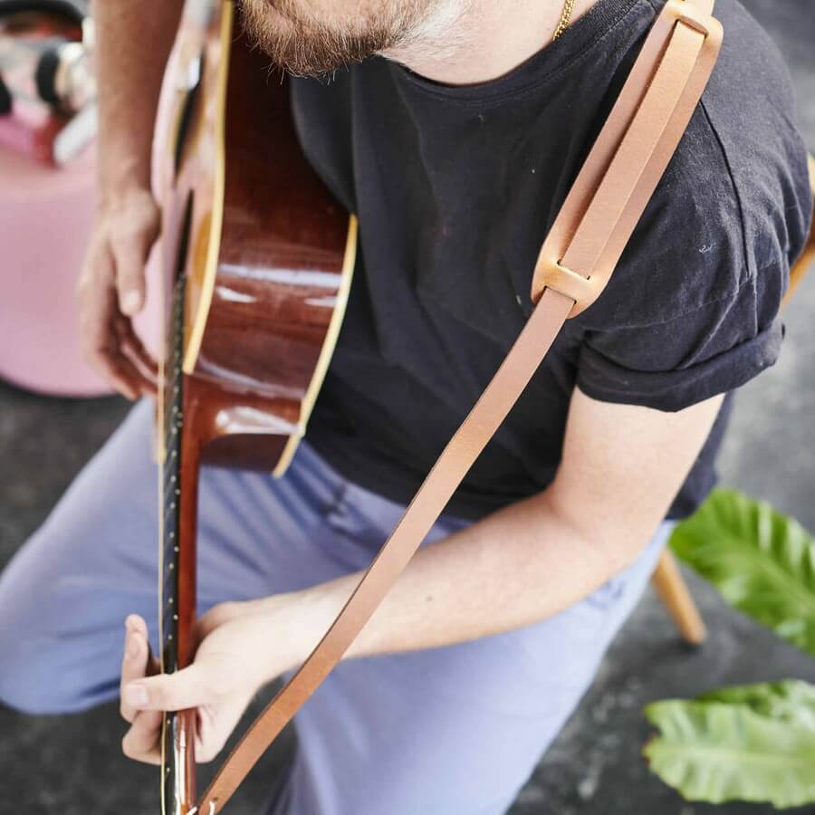 This leather guitar strap makes a beautiful personalised gift for any guitar player who appreciates handmade quality and comfort.