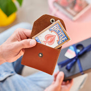 Cute leather case that holds a set of playing cards perfect for someone who likes to travel and enjoys games also makes a perfect family gift too!