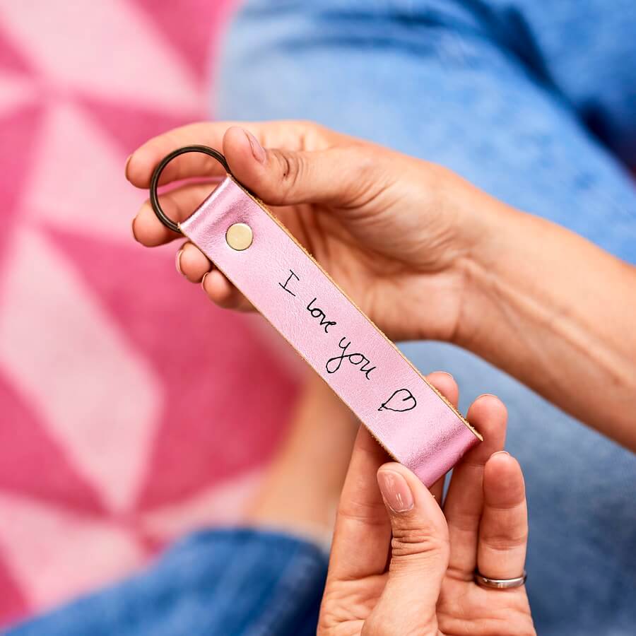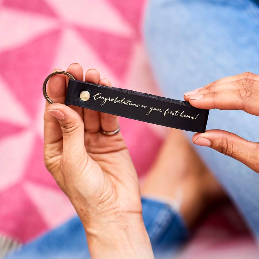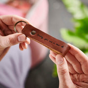 Beautifully handmade leather keyring is the perfect personalised present with your choice of words laser engraved on it. These make great gifts for friends, as stock fillers or even wedding favours.