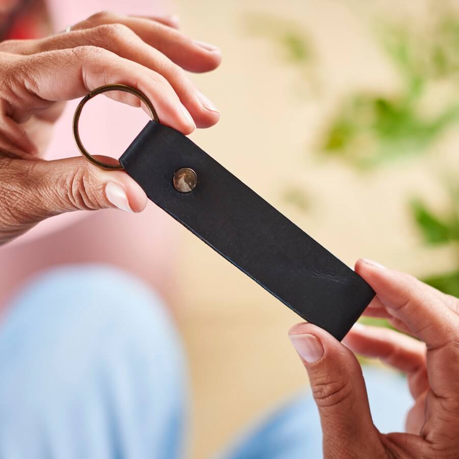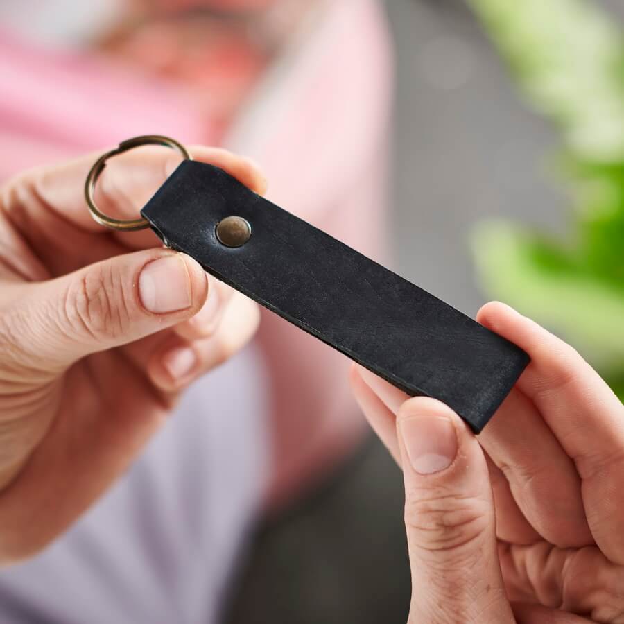 The hard-wearing buffalo leather will develop a beautiful patina when it is used, which really adds to it’s tactile nature. We have used a tough brass ring, which you can slide your keys easily onto.