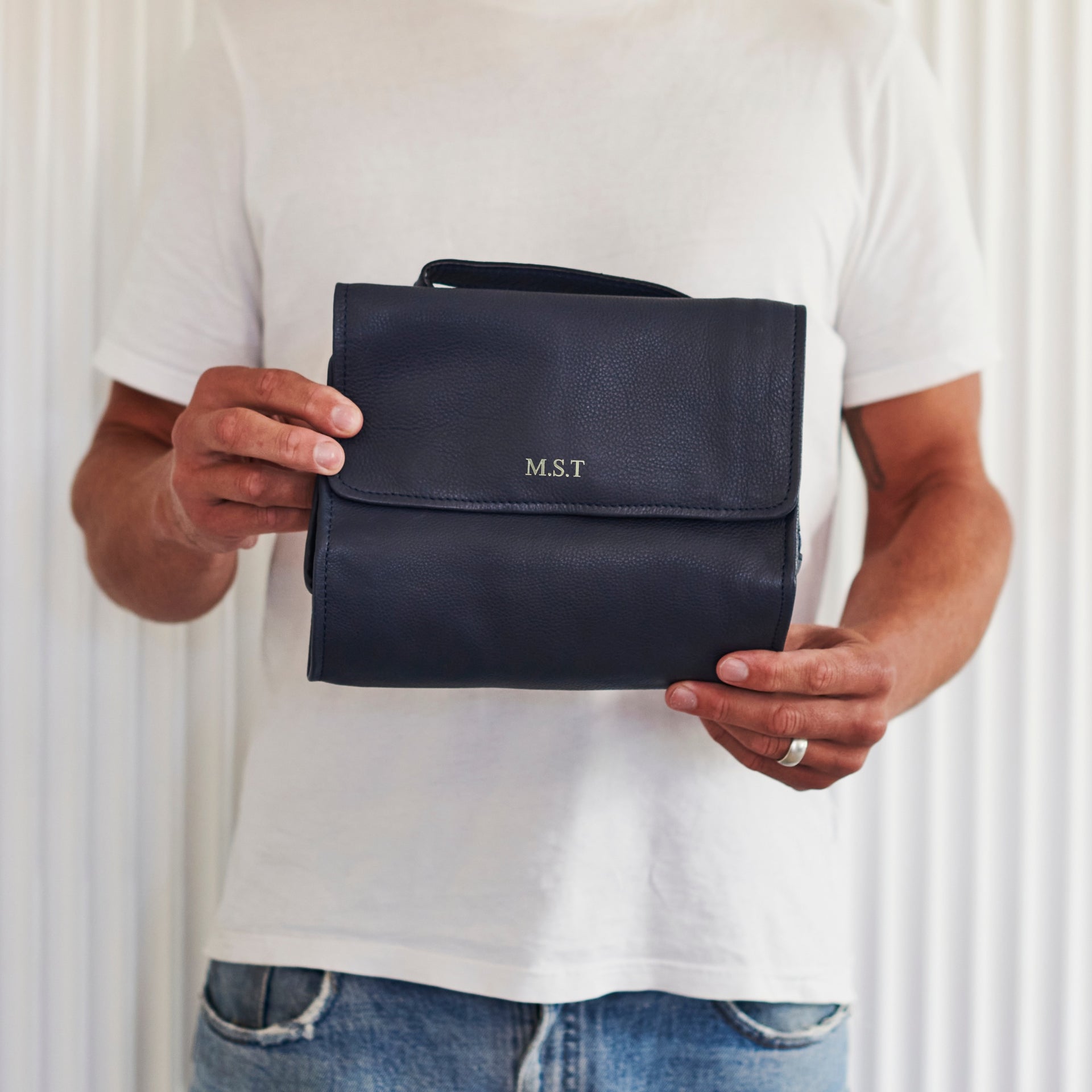 Personalised Leather Hanging Wash Bag for Men