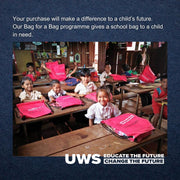 Each leather hanging wash bag arrives in a Vida Vida dust bag with details of how you've helped to provide a school bag to a child in need, through our charity partnership with United World Schools.