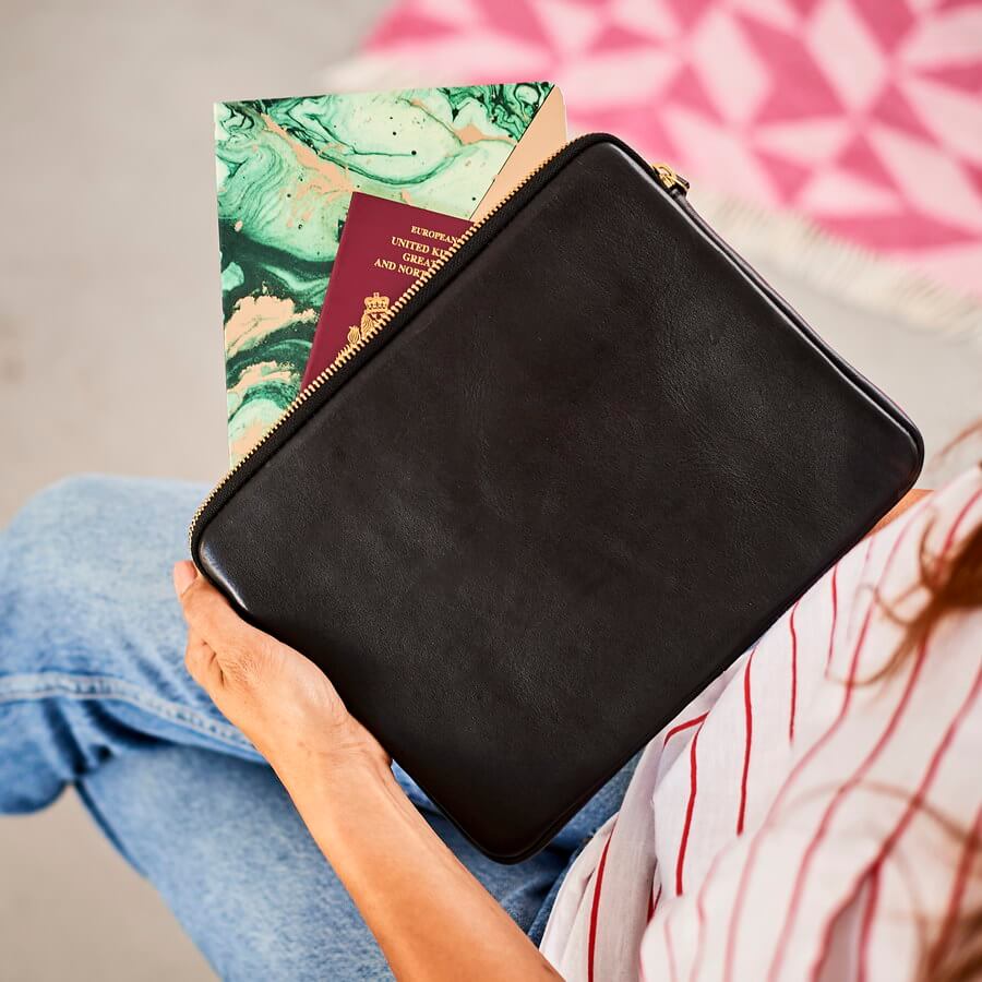 We line it with black cotton, which will protect your iPad and travel documents.
