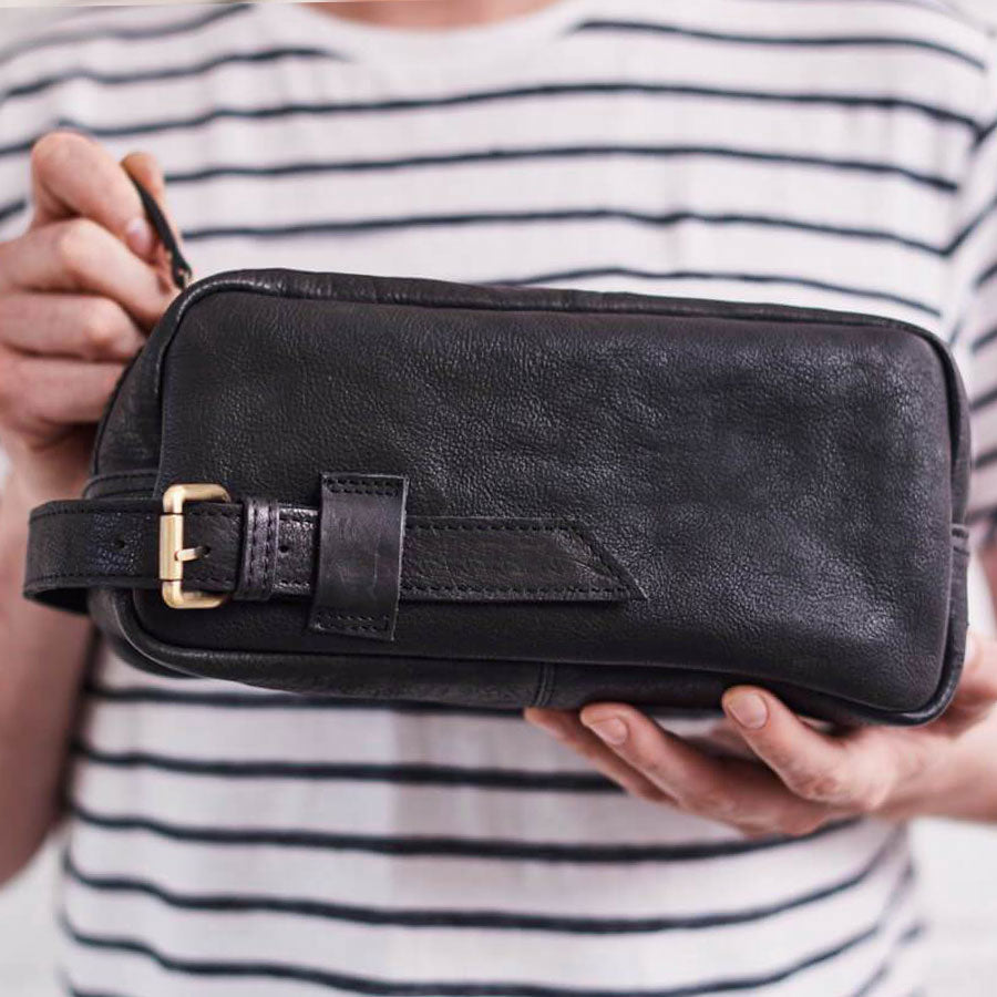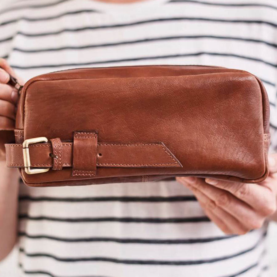 Handmade from wonderfully tactile leather - this is a leather wash bag to make any man feel special! Add initials on the strap for that extra special thoughtful touch.