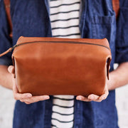 Each wash bag is handmade using beautiful buffalo leather and a design that is ideal for using at home or on trips away.