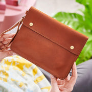This leather travel wallet is the ideal place to keep the family's travel essentials organised and close at hand. It's an ideal size for passports, tickets and currency and there is a handy detachable wrist strap.