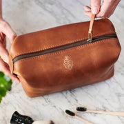 We hand-make each of these classic wash bags using incredibly tactile leather to make sure they're a pleasure to use. Inside there is a waterproof black lining and a zip pocket.