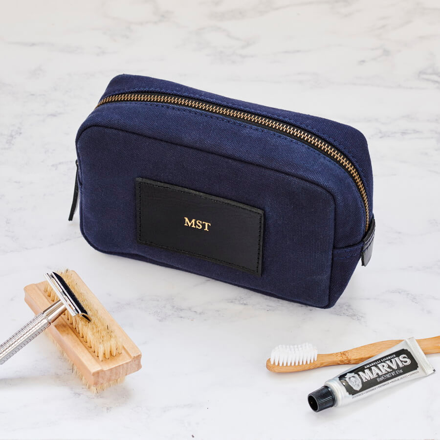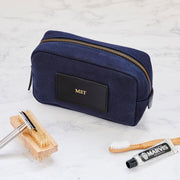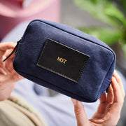 We can make this travel wash bag even more special by personalising it. We can hot-press monogrammed initials in gold or "blind" (no colour, just heat) which looks fantastic and really adds that extra special touch if it's a gift.