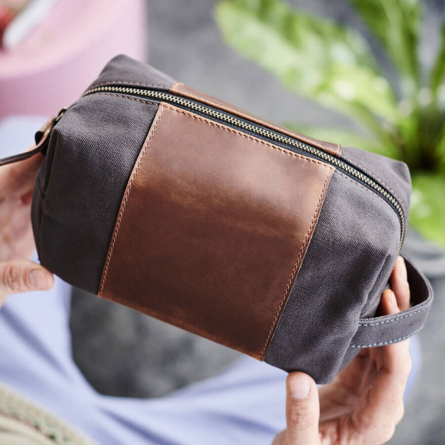 We have handmade each wash bag, using tough, smooth buffalo leather, which will soften and develop a beautiful patina as it's used and high quality canvas. We carefully hand-make each one to ensure their longevity and function.