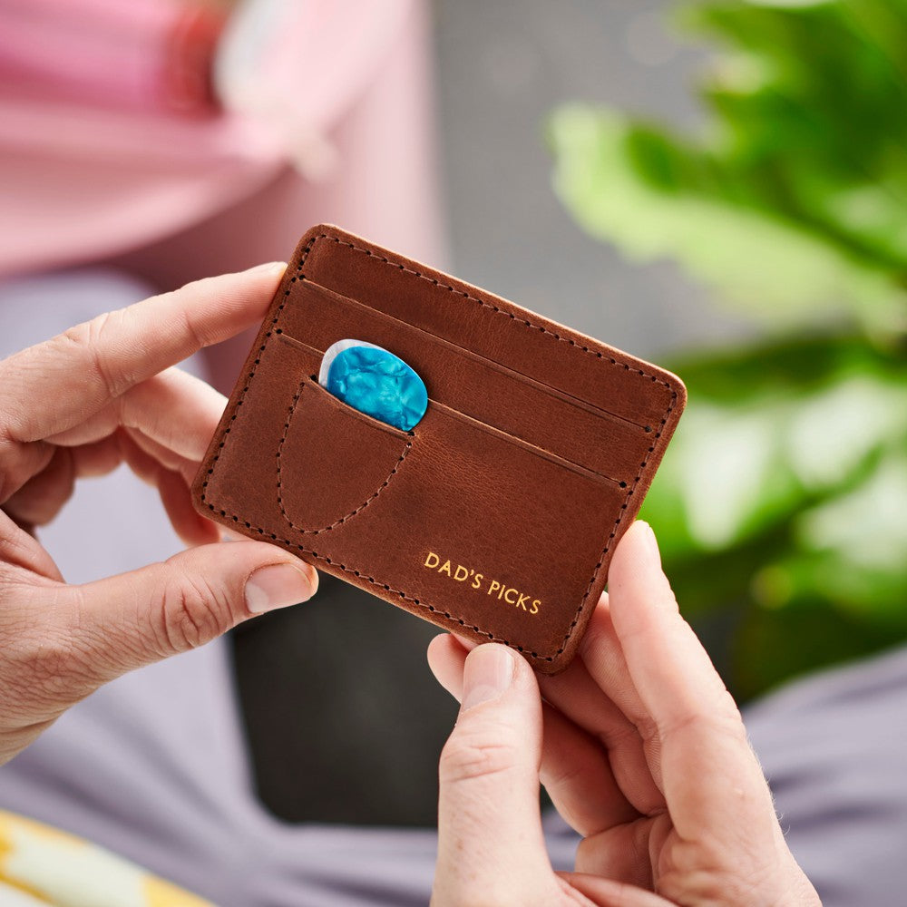 We've put togther our 2 best selling guitar gifts in one amazing gift box. You get a beautiful handmade guitar strap and a super cool credit card holder with guitar picks in it.
