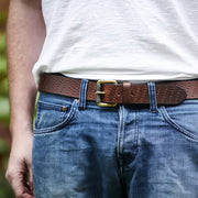 We've handmade this men's belt using hard-wearing buffalo leather and a quality brass buckle. The leather will age amazingly.