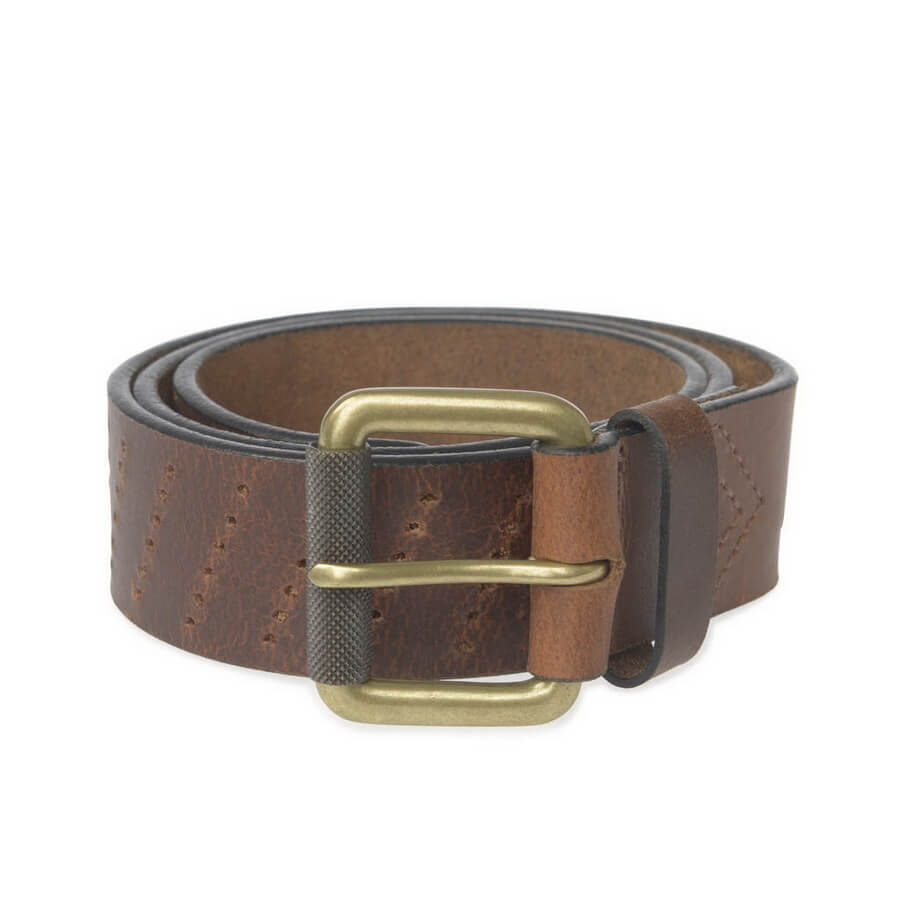 This handmade leather belt has been hand-perforated to create tactile detail, which is a pleasure to use.