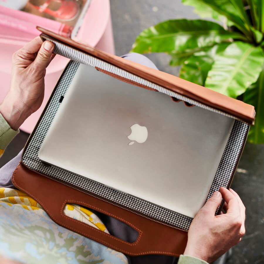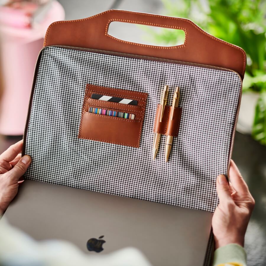 We have handmade each one using our finest leather and we decided to line it with smart black and white check cotton, which works really well with this design.