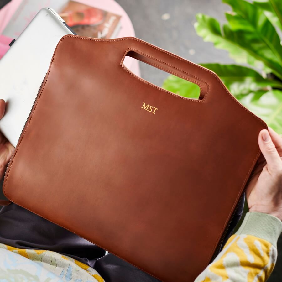 This handmade, zip-up leather laptop bag makes the perfect personalised gift for any stylish gent who deserves something extra special!