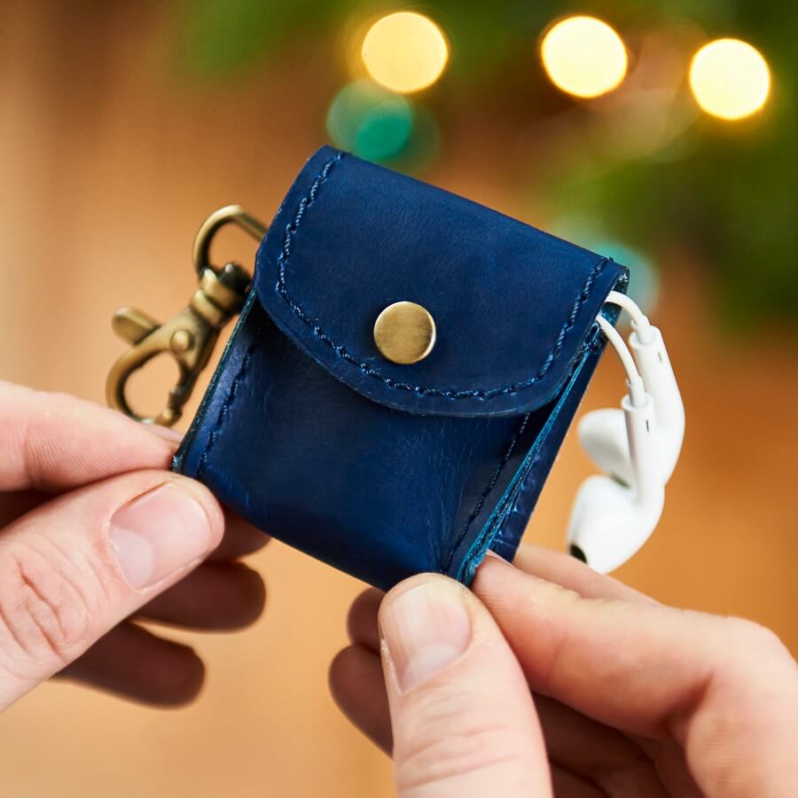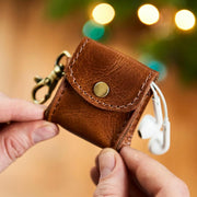 This handmade leather case is the perfect place to luxuriously store your headphones with a handy clip to attach to your bag if needed.