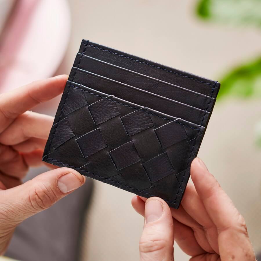 Our personalised Braided Leather Card Holder looks and feels even better than in the photo! Your unique heartfelt message laser engraved on the back makes it a very special gift.