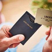 We have handmade this card holder using hardwearing, distressed buffalo leather and a simple, functional design, which will keep your cards safe. You can also fold notes into it, making it an extremely slim-fit wallet.