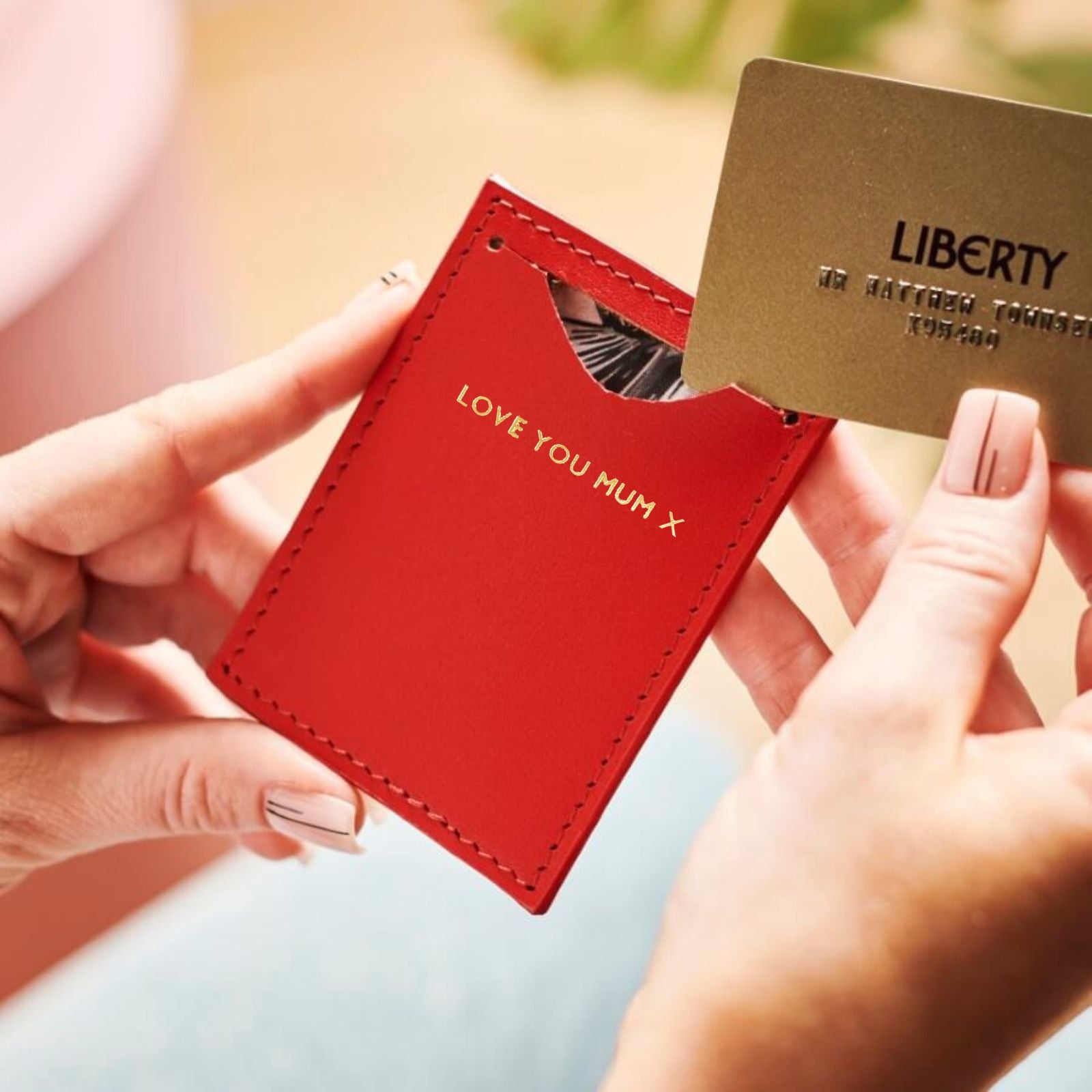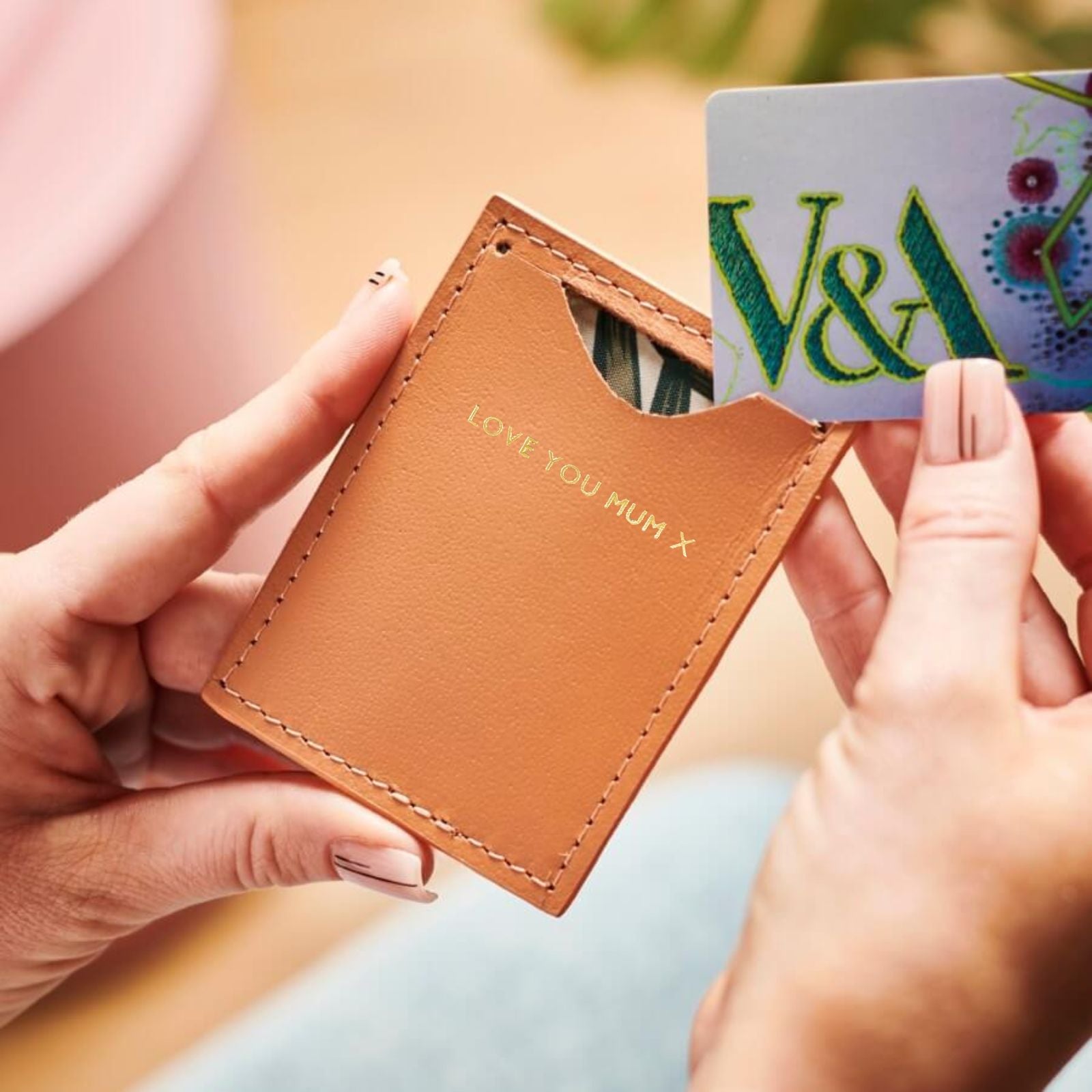 This simple but fun leather cardholder is lined with a tropical print allowing you to keep your cards safe in style!  It makes a perfect personalised present for someone special.