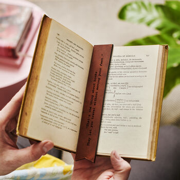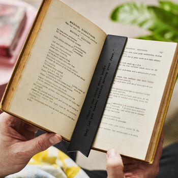 This handmade leather bookmark can be personlisaed by laser engraving a message or quote from a book or anything else that you'd like.