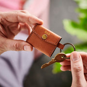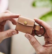 We have made each leather keyring by hand, using some extra special leathers. They will soften and develop a beautiful patina as they're used.