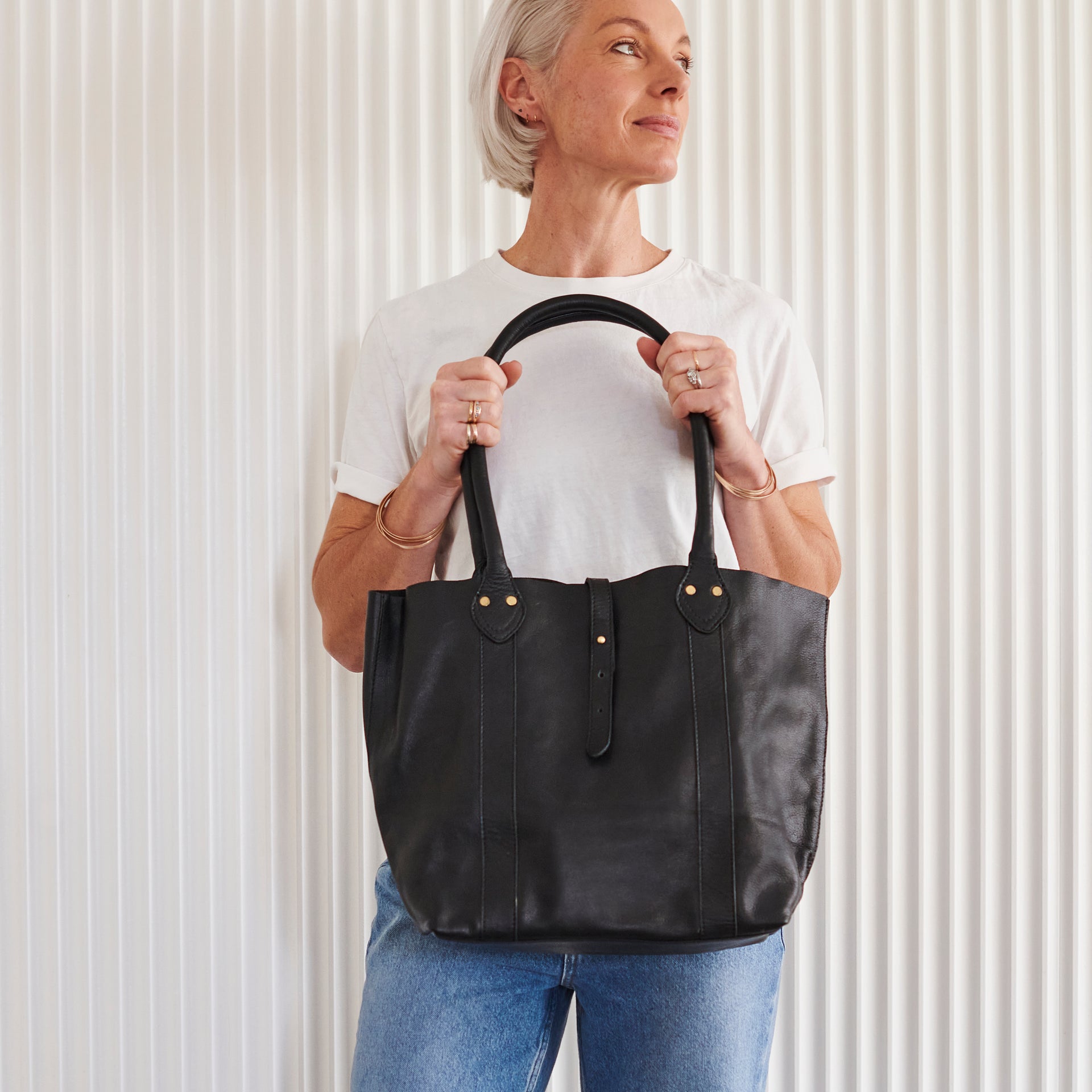 This strong and soft black leather tote bag is perfect for everyday living. Handmade from our finest, most luxurious leather, it combines practicality with timeless elegance — the perfect stylish gift. Each tote is crafted with expert care and attention, using extra-special leather to create a bag we’re truly proud of.