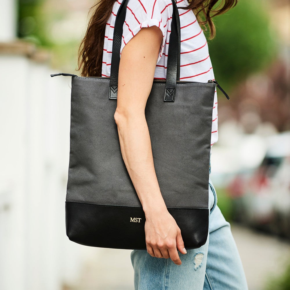 We can also make these even more special by PERSONALISING them. We can hot-press monogrammed initials, a name or a message in blind (no colour), vintage gold or matte black to make it the perfect present or something that you can cherish forever! We emboss at the centre-top of the leather band at the base of the bag.