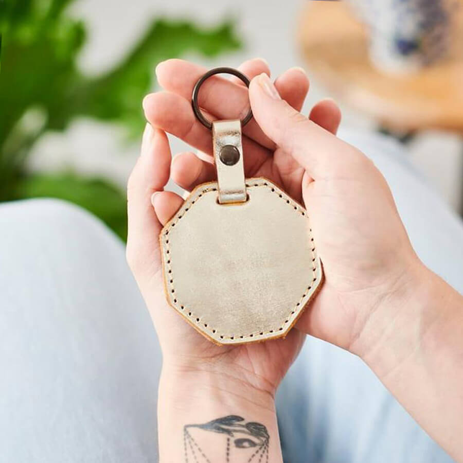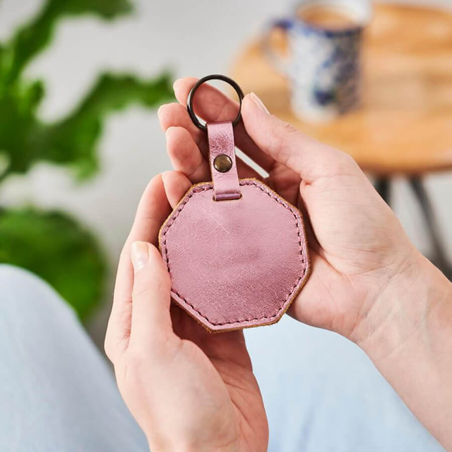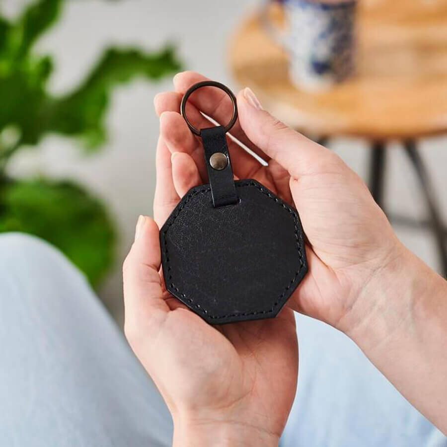 This hexagonal personalised leather key ring is the perfect way to remind someone just how special they are with a personal message or quote.