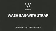There is a black waterproof lining and an internal zip pocket and an external zip pocket. There is also a handy detachable strap so it can be hung in the bathroom or easily carried.